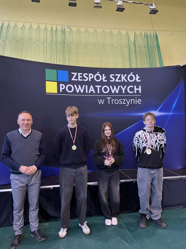 W dniach 18-19.03.2026r. Odbyły się zawody strzeleckie „VI Powiatowy Turniej Strzelectwa Sportowego o Puchar Starosty Ostrołęckiego”. Naszą szkołę reprezentowali uczniowie klas ósmych. Uczniowie po krótkim przeszkoleniu strzelali na strzelnicy z broni długiej sportowe tzw. KBKS. W ramach konkursu odbywała się rywalizacja grupowa i indywidualna. W poszczególnych klasach wytypowana najlepszych uczniów. W klasie ósmej a najlepsi to: Weronika, Michał i Szymon, zaś w klasie ósmej b najlepszymi okazali się: Dominika, Julia i Pola. Medale zwycięzcom wręczał Pan Mariusz Bacławski dyrektor Zespołu Szkół Powiatowych w Troszynie